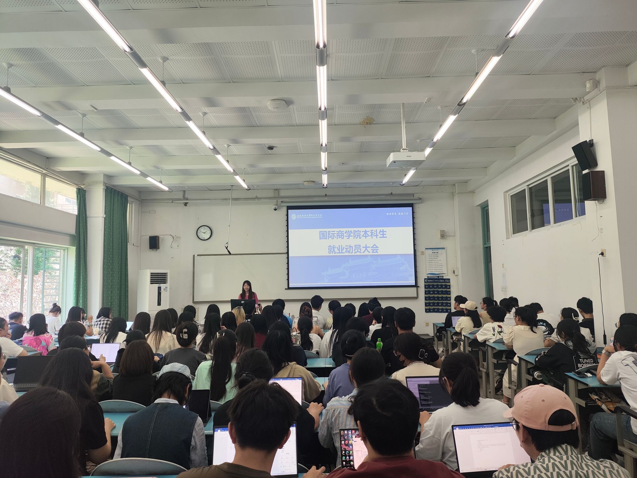 6月11日,国际商学院举办2021级本科生就业动员大会,开展就业准备专题教育,提前进行就业工作部署。会议由辅导员崔雅岚主持,学院党委副书记俞佩玉作动员发言,2021级全体本科生参加。