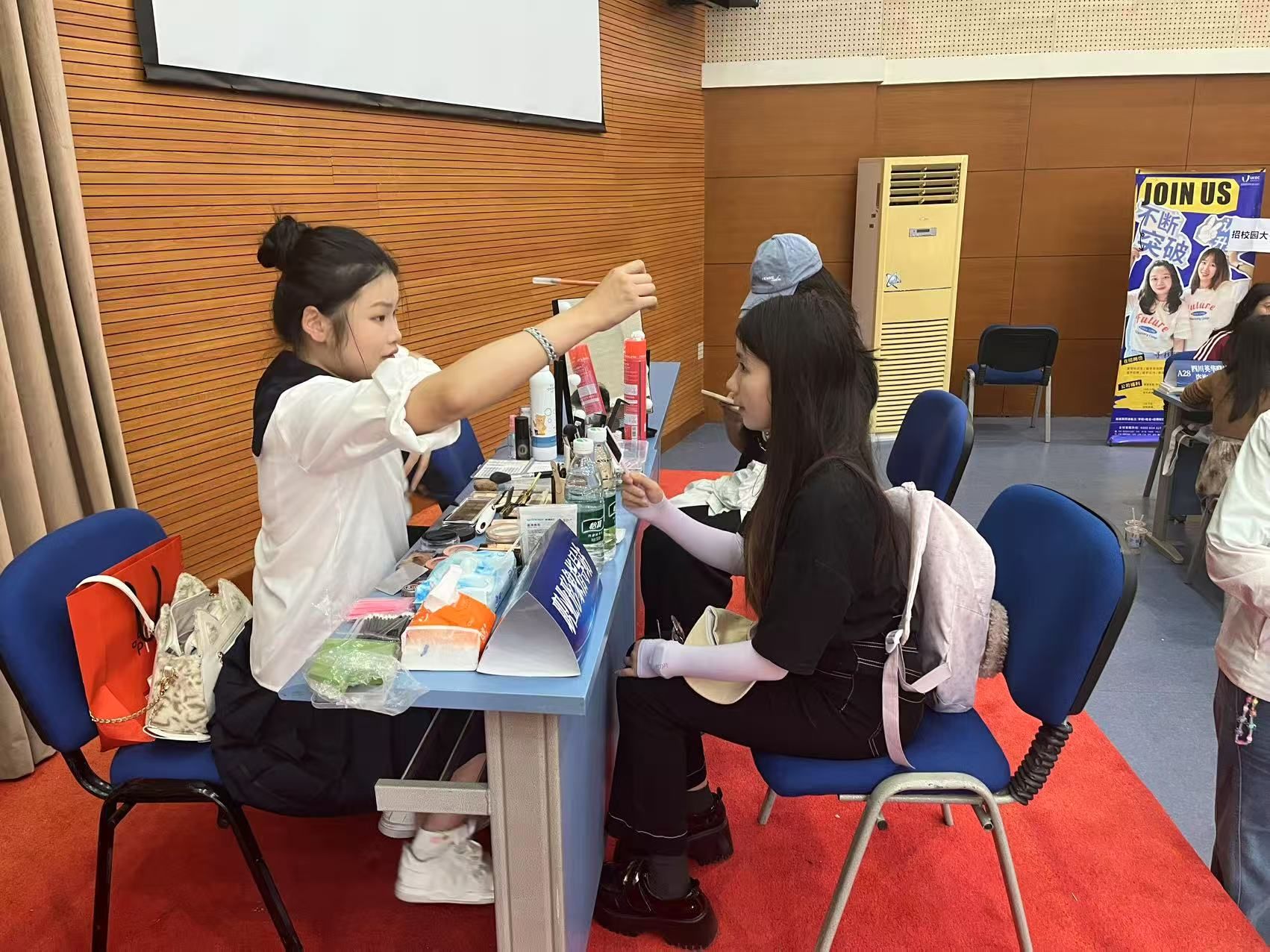 双选会现场还特别开设了“简历加油站”和“化妆点”服务,不仅有资深教师一对一指导学生优化简历,帮助我校学子打磨求职“敲门砖”,更有专业化妆师为同学们提供清爽得体的妆容建议,助力同学们以最佳的“第一印象”迎接求职面试。