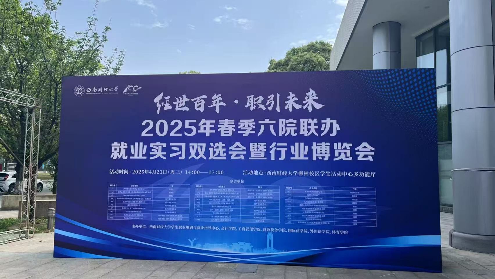 4月23日下午,由国际商学院联合会计学院、工商管理学院、财政税务学院、外国语学院和体育学院共同举办的“经世百年·职引未来”2025年春季就业实习双选会暨行业博览会在柳林校区学生活动中心多功能厅成功举行,现场校企互动气氛热烈,总计参与学生超500人次。