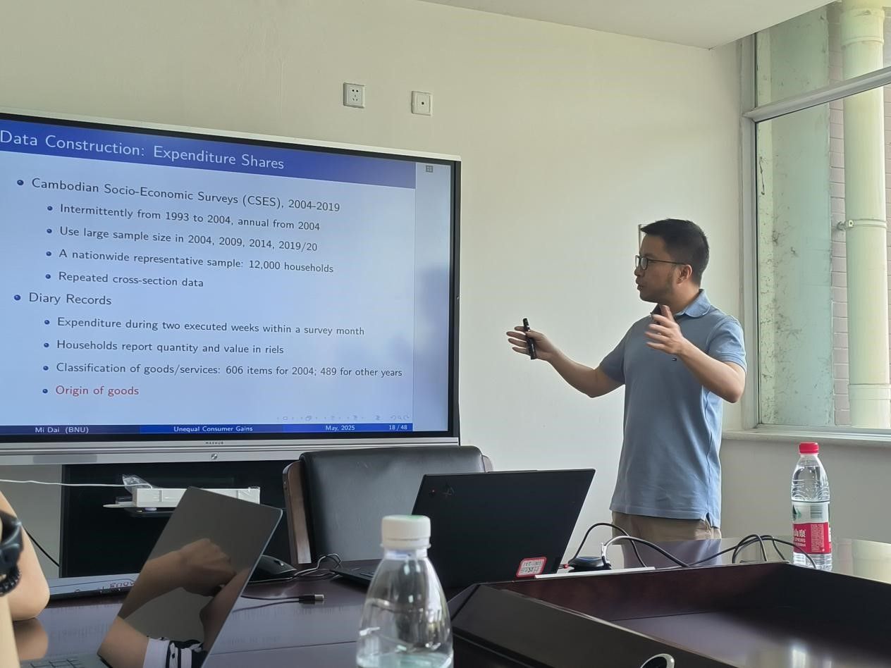 戴觅教授本次分享的内容主要关注贸易自由化对于消费者的差异化福利影响,构建一个核算框架详细论证了由于不同财富水平的消费者对于进口消费品的结构性差异、种类差异以及质量间差异的存在性,贸易自由化有可能存在“利富”效应,这对现有国际贸易理论中关于贸易的福利作用提供了新的视角。以本次讲座为契机,戴觅教授还重点讲解了利用国际消费者数据开展贸易福利研究的心得和投稿发表经验,为我校师生进一步理解和提升国际期刊发表能力提供了重要参考。