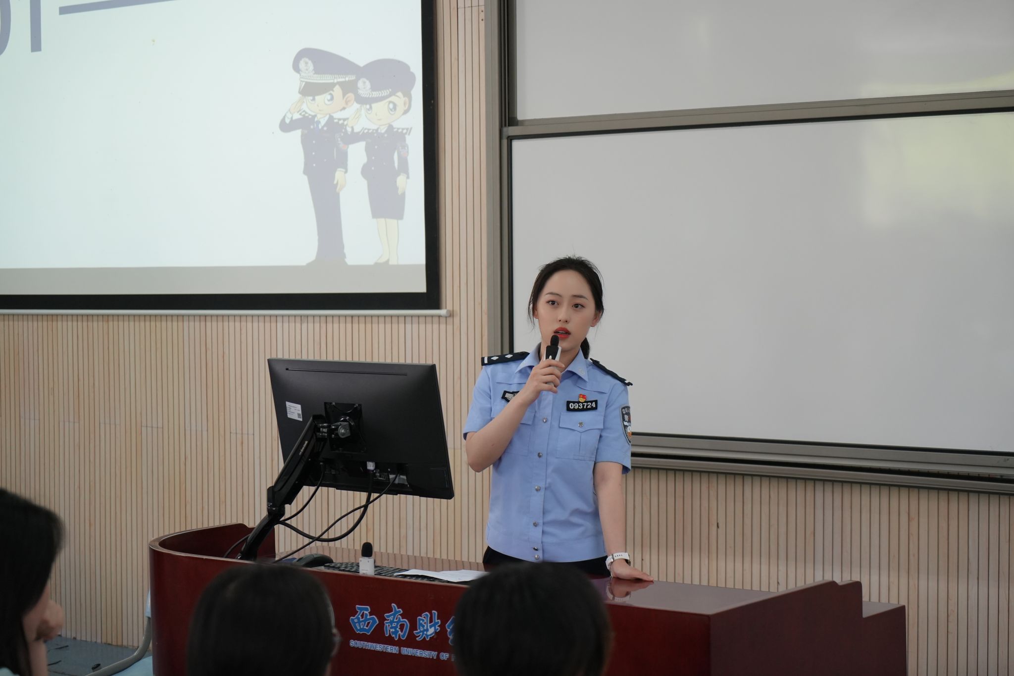 为深化学生诚信教育体系,强化防范电信网络诈骗能力,营造平安和谐校园环境,5月20日,国际商学院在经世楼G102举办了“诚信护航·安全启程”反诈知识专题讲座。特邀温江区公安分局张美玲警官担任主讲人,通过剖析诈骗陷阱、警示法律红线,将诚信教育与安全防范深度融合,为200余名学生上了一堂生动的“人生必修课”。