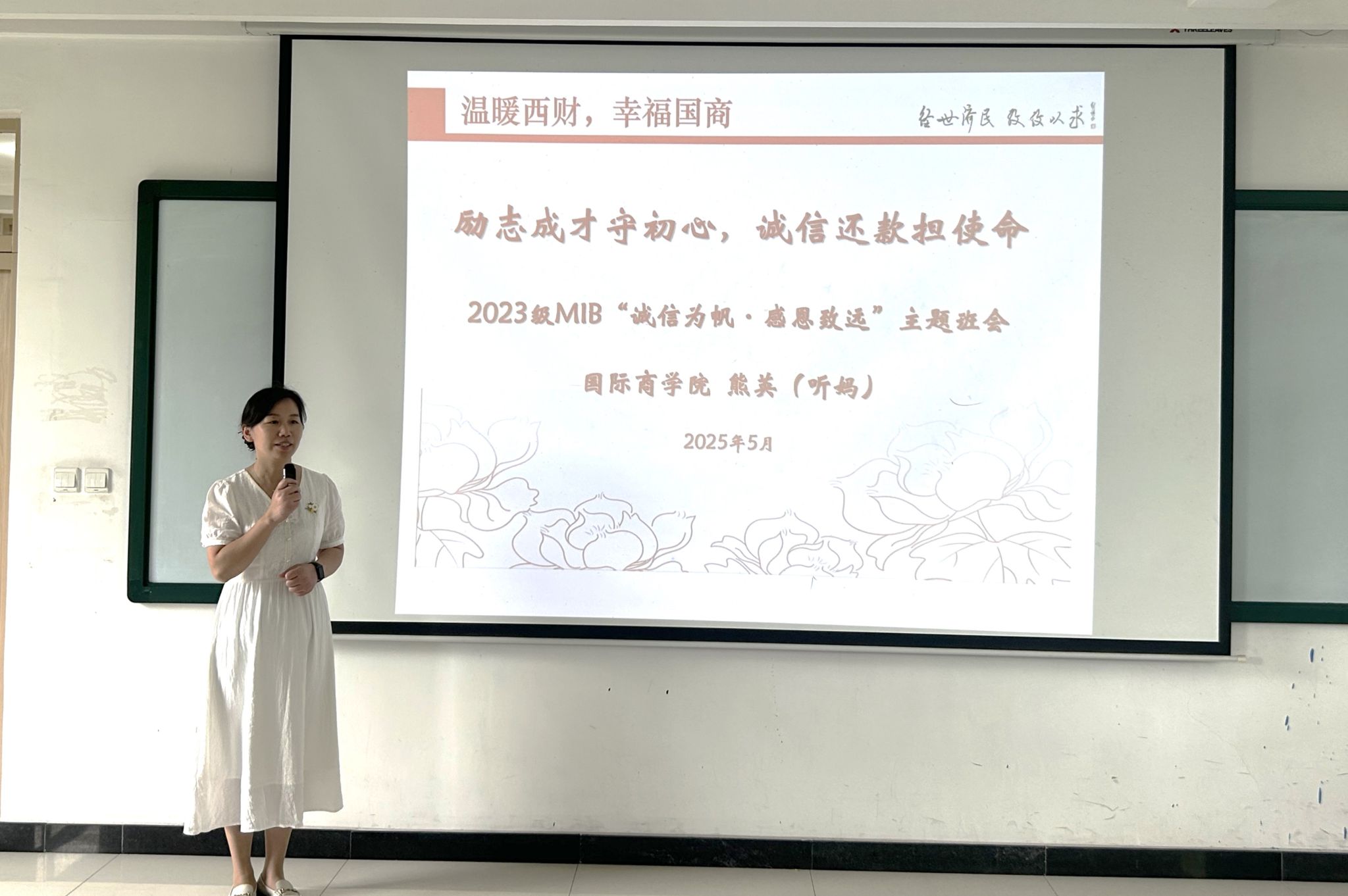 此外,学院还邀请了学校资助管理中心学生团队来到班会现场。他们从“学业诚信是治学之基、职业诚信是立业之本、生活诚信是立身之要”三个维度,为同学们分享了诚信教育的重要性。同学们纷纷表示,通过这次主题班会,不仅增强了自己的诚信意识和感恩之心,更明确了自己未来的努力方向。相信在“诚信为帆·感恩致远”这一精神灯塔的照耀下,国际商学院的学子们定能以诚信为楫、感恩为帆,在人生的浩瀚海洋中破浪前行,驶向辉煌未来。