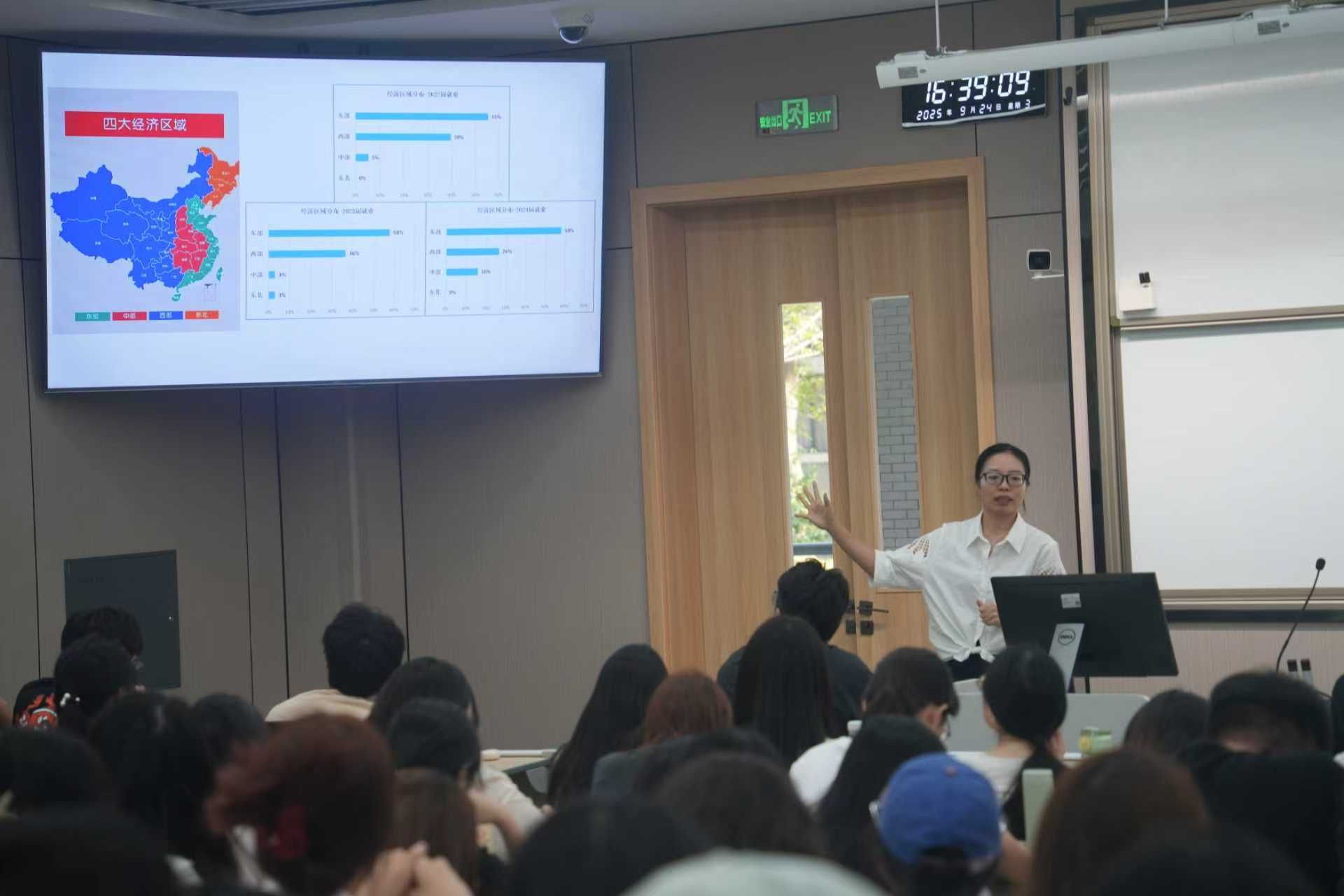 罗小艳基于学院近年毕业生就业数据,从行业与地域分布入手,通过典型案例生动讲解了简历撰写的关键要点与面试脱颖而出的核心技巧,为同学们提供了有针对性的实操指导。