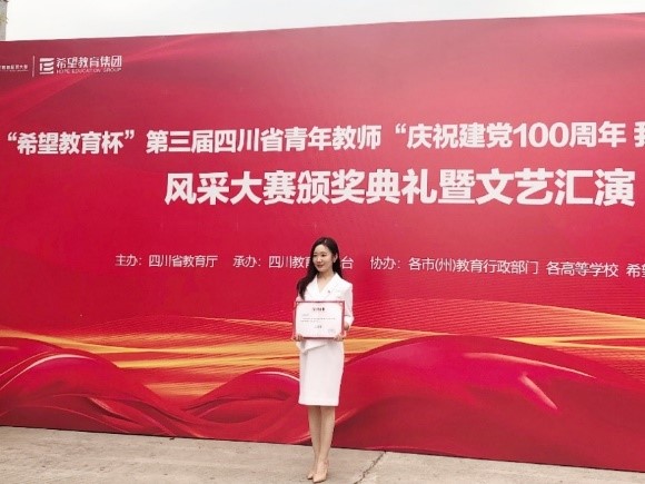 2021年9月7日,四川省教育厅举办的第三届四川省青年教师“庆祝建党100周年我把青春献给党”风采大赛进行了决赛颁奖。全省共1652名教师参赛,最终获得一二三等奖的教师共113名。我院青年教师向姝婷代表学校参加了此次大赛,为我校唯一晋级决赛的参赛教师。在学校教师教学发展中心和国际商学院的大力支持和指导下,向姝婷老师经过激烈角逐和层层选拔,凭借优良的师德师风、扎实的教学功底、优秀的专业知识和深厚的人文素养在大赛中脱颖而出。在高校教师及辅导员组别获得初赛第一、决赛第六的优异成绩,荣获高校教师及辅导员组二等奖。