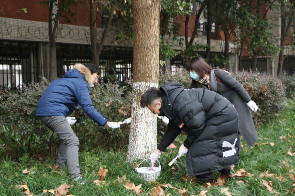 为丰富支部主题党日活动形式,发挥教师的先锋模范作用以及正面示范引导作用,推动“我校园我爱护”劳动实践活动常态化制度化,引导学生积极参与劳动实践锻炼、丰富劳动内容、增长劳动技能,协助做好校园树木秋冬季养护工作。12月22日下午,国际商学院组织教师党员和学生党员发展对象50余人一起开展了树干涂白志愿服务活动。