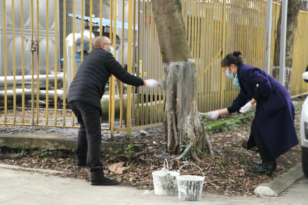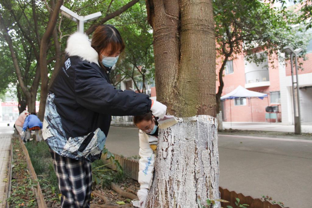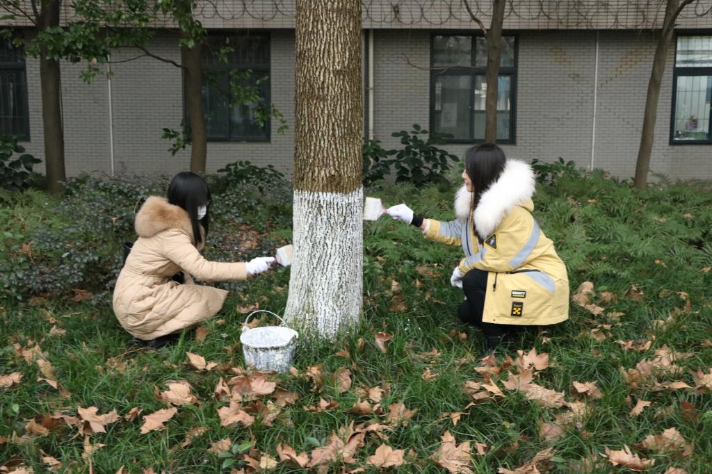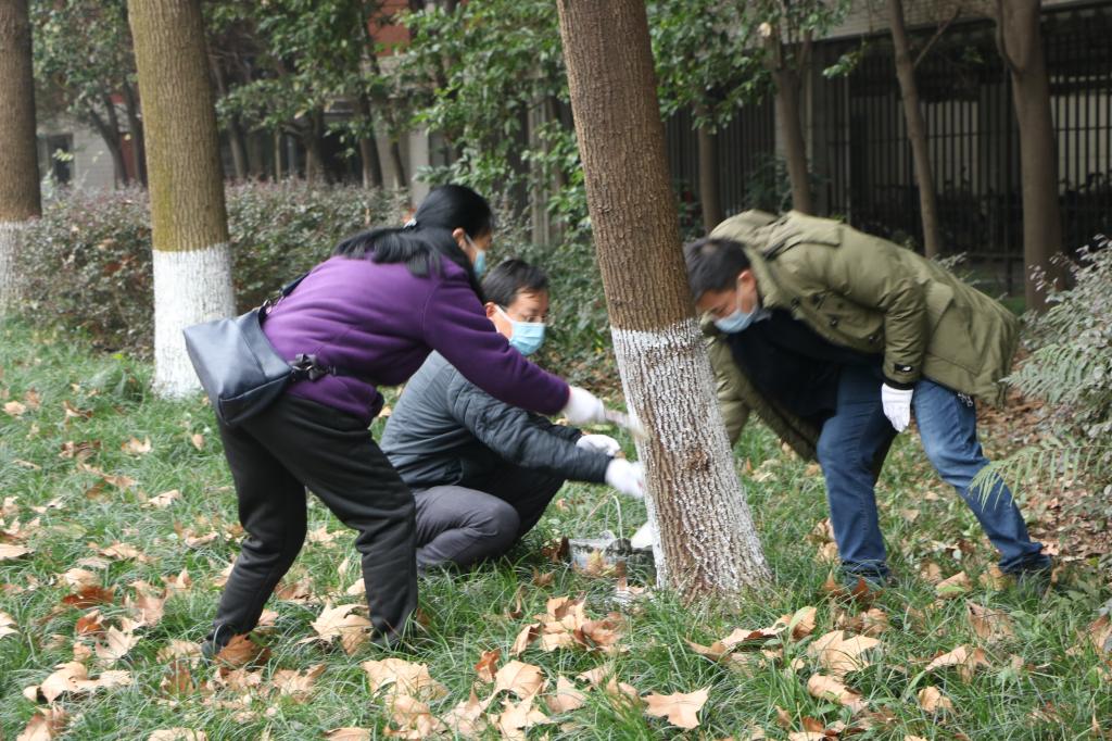 活动前,工作人员向师生们普及了相关知识和劳动技巧。参与师生在专业人员现场指导下将事先按照严格比例配置的涂白石灰均匀的涂到树干。整个活动现场大家热火朝天,大家充分发扬不怕脏、不怕苦、不怕累的劳动精神,师生齐心协力,为智、慧、诚园周围的树木穿上了整洁靓丽的洁白新衣。