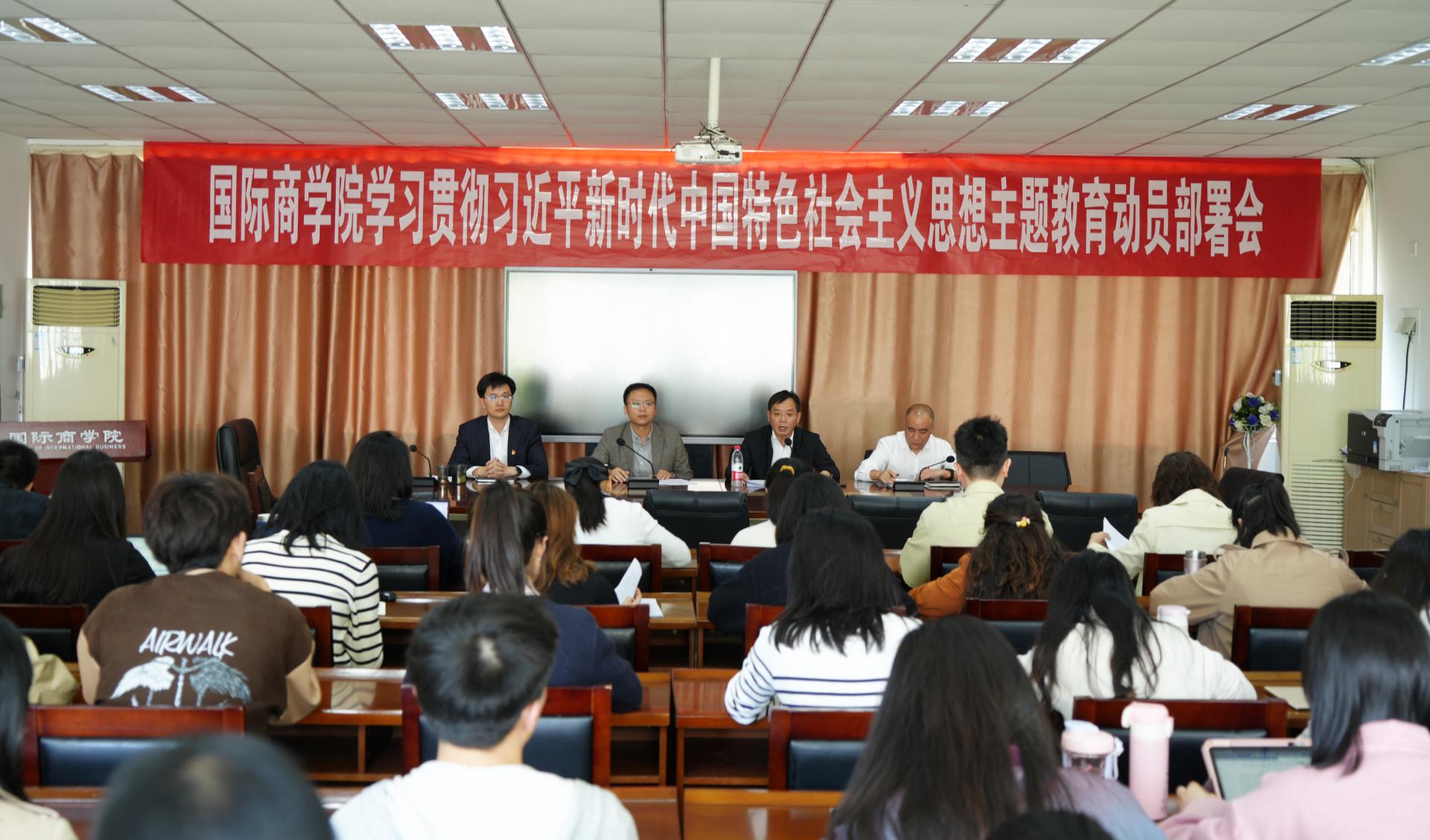 4月25日,国际商学院召开学习贯彻习近平新时代中国特色社会主义思想主题教育动员部署会。学院党委书记、主题教育领导小组组长张剑波主持会议并作动员讲话。学院领导班子成员、全体教职工、学生党员代表等参加会议。