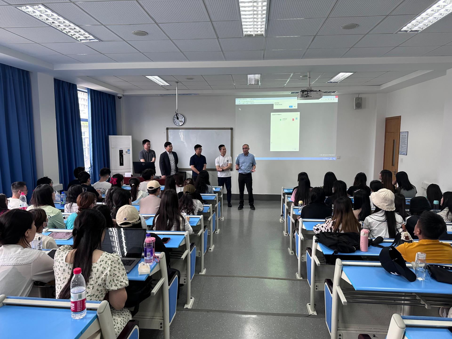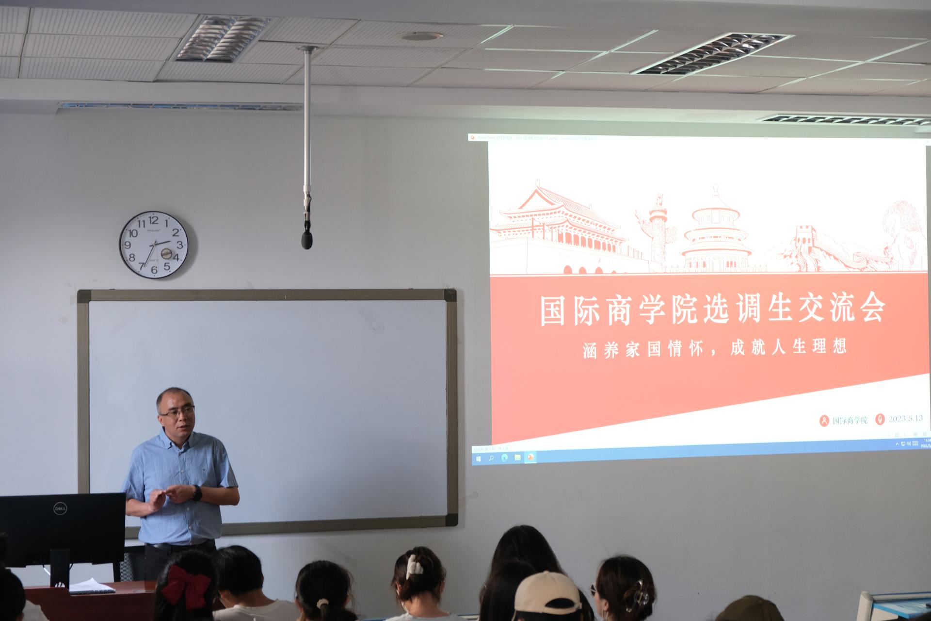 国际商学院高度重视就业工作,抢抓春招关键期,全力攻坚促就业,多措并举引导在校优秀大学生主动将个人前途命运与国家事业发展相结合,积极投身地方经济社会建设,到基层施展才华、建功立业。为端正学生对服务基层的正确动机,提升参加选调公考招录的能力素养,5月13日下午,学院在光华裙楼2202教室举办“涵养家国情怀,成就人生理想”选调生交流会。本场交流会邀请到省、市、县、乡(镇)、银保监会等事业单位各个层面6位优秀校友,针对会前学院向同学们收集的130余条有关选调公考的困惑与疑问,以职业发展、备考经验、岗位适应等为主题做经验分享。交流会由学院党委副书记俞佩玉主持。
