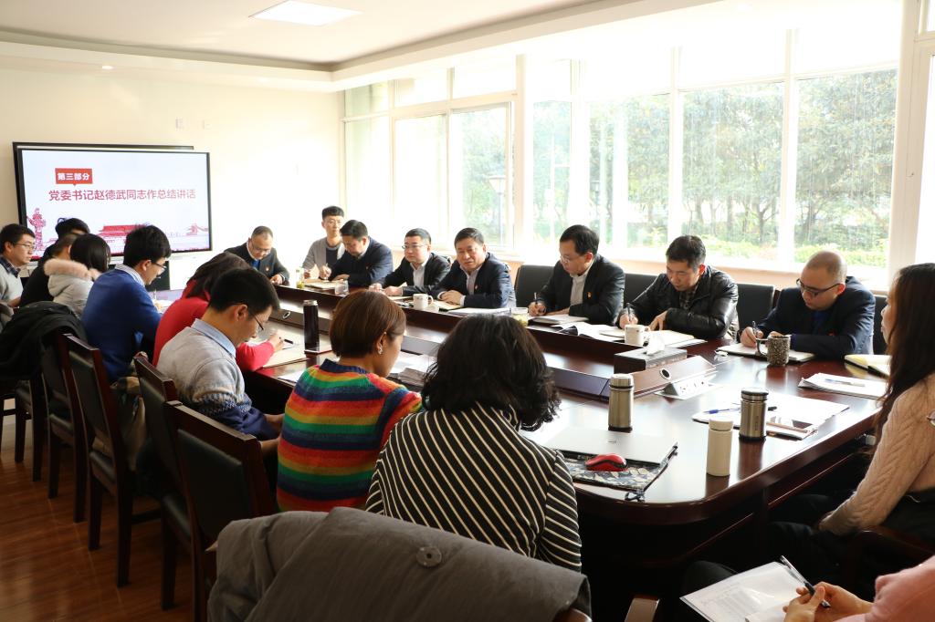 1月7日下午,党委书记赵德武参加国际商学院教师第一党支部主题党日活动,调研支部建设并宣讲党的十九届四中全会精神、省委十一届六次全会精神和学校第十三届二次党代会精神。党办负责人、学院领导班子成员、全体支部党员参加了在通博楼B117会议室举行的活动。