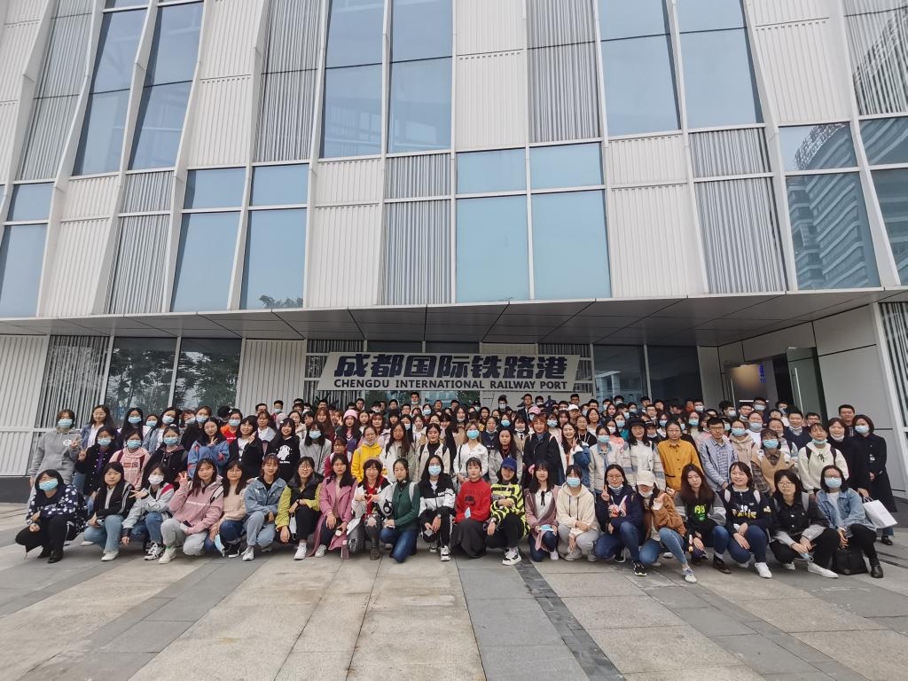 10月23日上午,国际商学院2020级经济与贸易类165名本科生在叶作亮、李德辉、项旎、罗小艳四名教师的带领下赴成都国际铁路港进行参观学习。