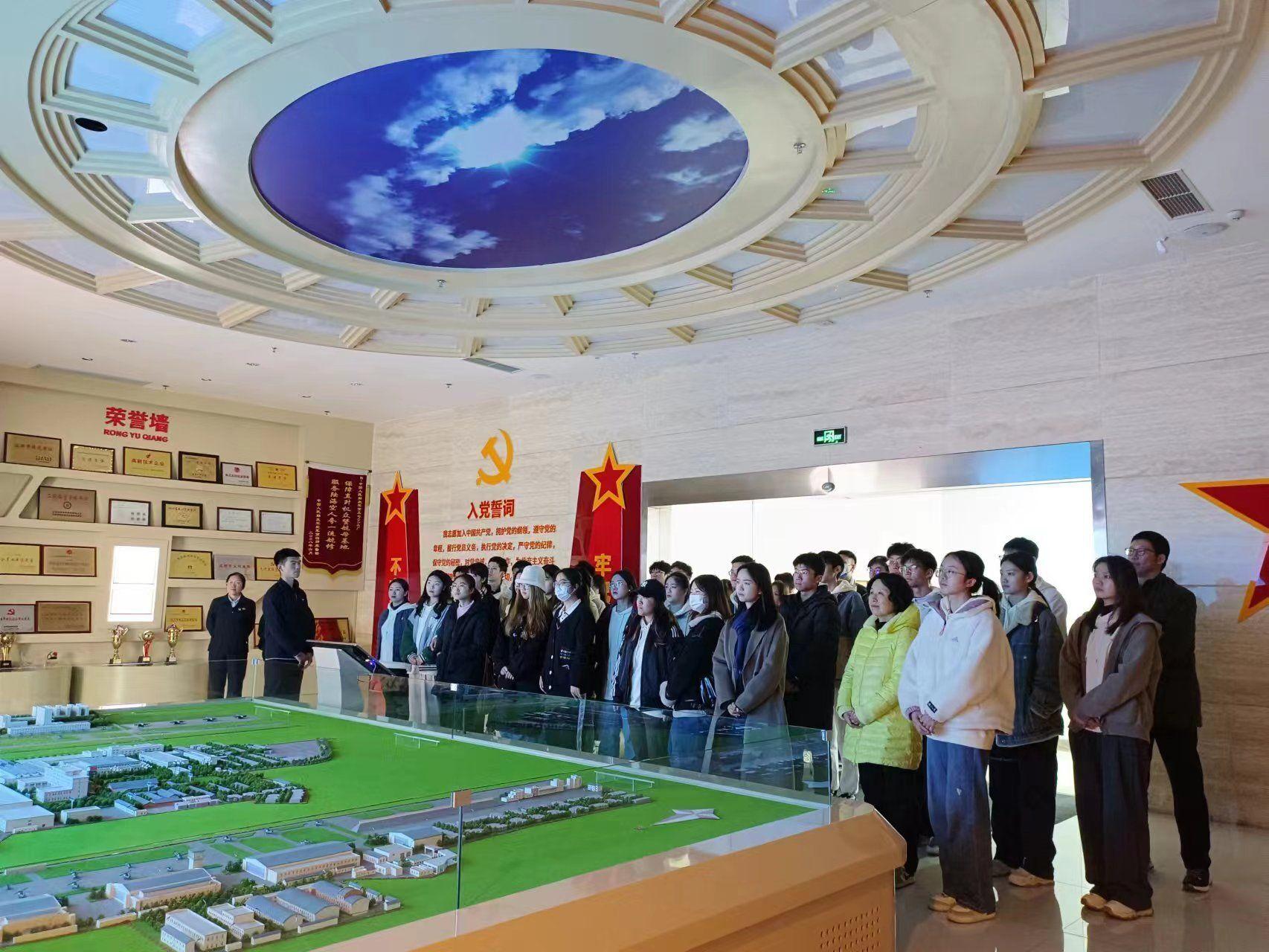 在厂史陈列馆全体师生观看了宣传影像,从工作人员的讲解中了解了国营锦江机器厂的历史沿革、航空发动机的原理及发展过程、办公设备及环境的历史变迁,感受先辈们早期进行航空技术研究的艰辛以及中国航空国防力量从无到有、从弱到强的发展历程。