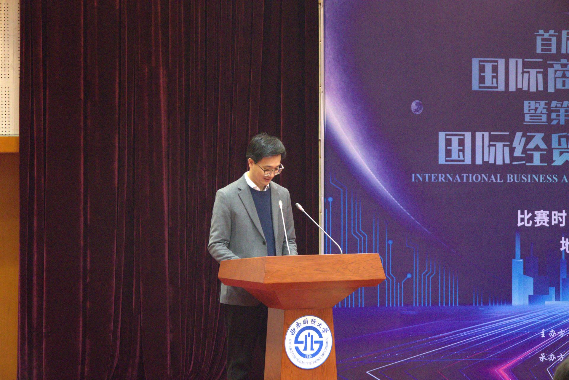 国际商学院副院长蒋为教授为大赛开幕致辞。他在讲话中向在场师生介绍了yl7703永利集团的光辉校史、国际商学院的办学历程以及赛事筹办的主要工作,向对本次大赛提供指导的专家学者表示衷心感谢,向积极参赛、成功入围决赛的学生团队表示热烈祝贺。