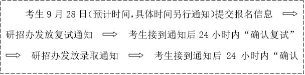 5.获得拟录取资格的申请人务必于9月28日(预计时间,具体时间另行通知)登陆教育部“全国推荐优秀应届本科毕业生免试攻读研究生信息公开暨管理服务系统”填写并提交报名信息,填写并提交报名信息。并按照如下程序完成录取确认,逾期未确认将视为自动放弃录取资格。